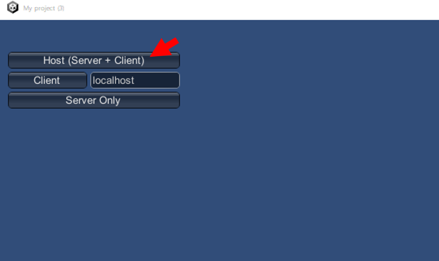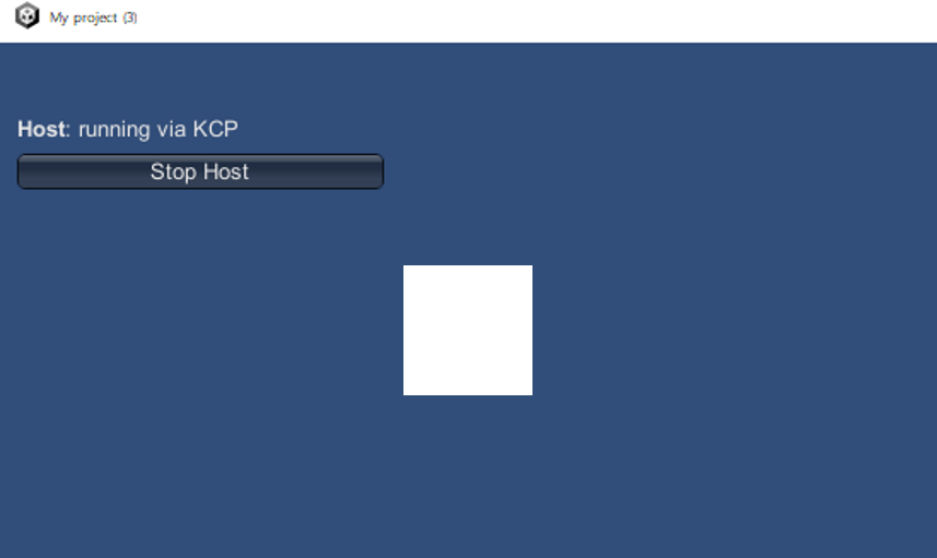 첫번째로 실행한 게임은 Host로 실행해서 서버와 클라이언트 역할을 동시에 맡깁니다. Host로 접근하면 클라이언트 오브젝트에서 만든 사각형이 나와서 조작할 수 있습니다.