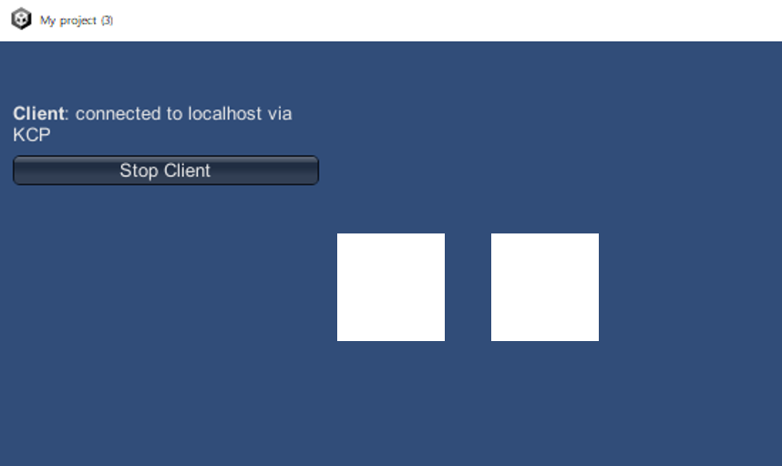 두번째 게임은 클라이언트로만 실행해서 앞선 게임서버에 접속해줍니다. 그러면 앞선게임에서 조작하는 사각형이 보이고 두번째 게임에서 조작하는 사각형도 첫번째 게임에 정상적으로 출력됩니다.
