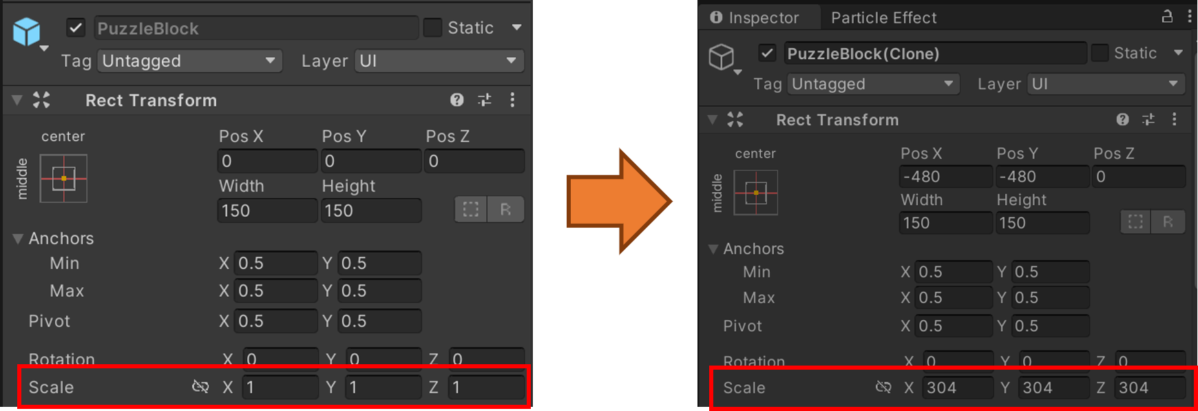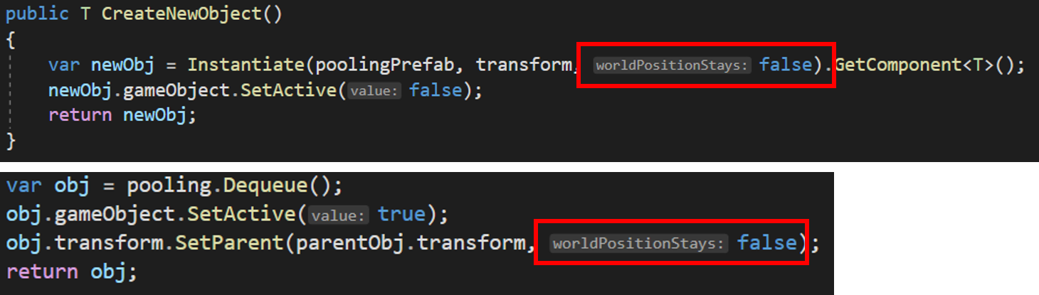 해결방법은 생각보다 간단합니다. 해당 프리팹을 생성하거나 부모 오브젝트를 변경해줄 때, bool worldPositionStays라는 매개변수 값을 false로 설정해주면 됩니다.