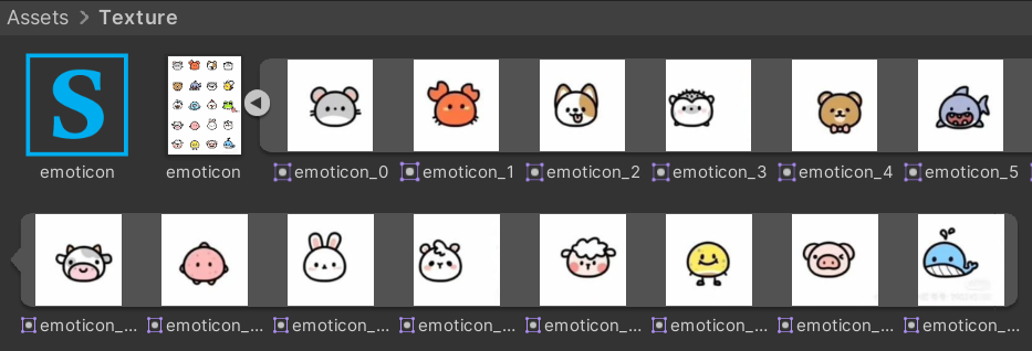 이모지를 추가해주기 위해서는 일단 이모지로 사용할 이미지를 multi sprite로 잘라줍니다.