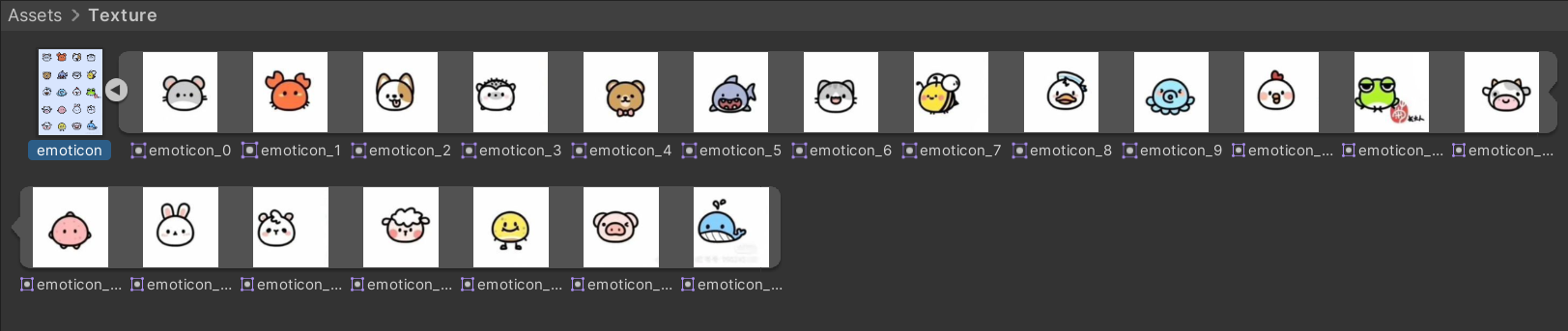 이모지를 추가해주기 위해서는 일단 이모지로 사용할 이미지를 multi sprite로 잘라줍니다.